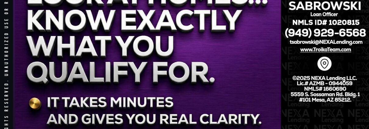 Hi, my name is Troy Sabrowski. I’m a Loan Officer with NEXA Lending LLC., offering personalized mortgage solutions, fast customized quotes, great rates and service with integrity.