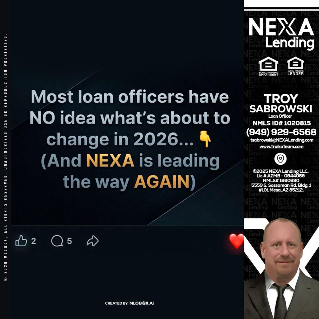 most loan officers - Troy Sabrowski -Loan OfficerHi, my name is Troy Sabrowski. I’m a Loan Officer with NEXA Lending LLC., offering personalized mortgage solutions, fast customized quotes, great rates and service with integrity.